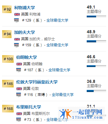 / USNEWS全球大学排名 英国免疫学学科大学排名榜单