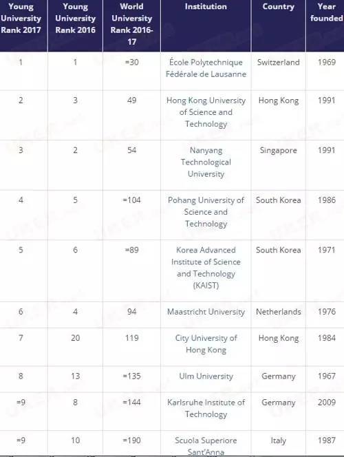 英国当地时间2017年4月5日,英国《泰晤士高等教育》(Times Higher Education)发布Times Higher Education Young University Rankings(泰晤士高等教育年轻大学排名),新兴的大学在国际化方面表现优异。