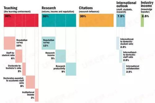 《THE》年轻大学排名指标分为五个方面: