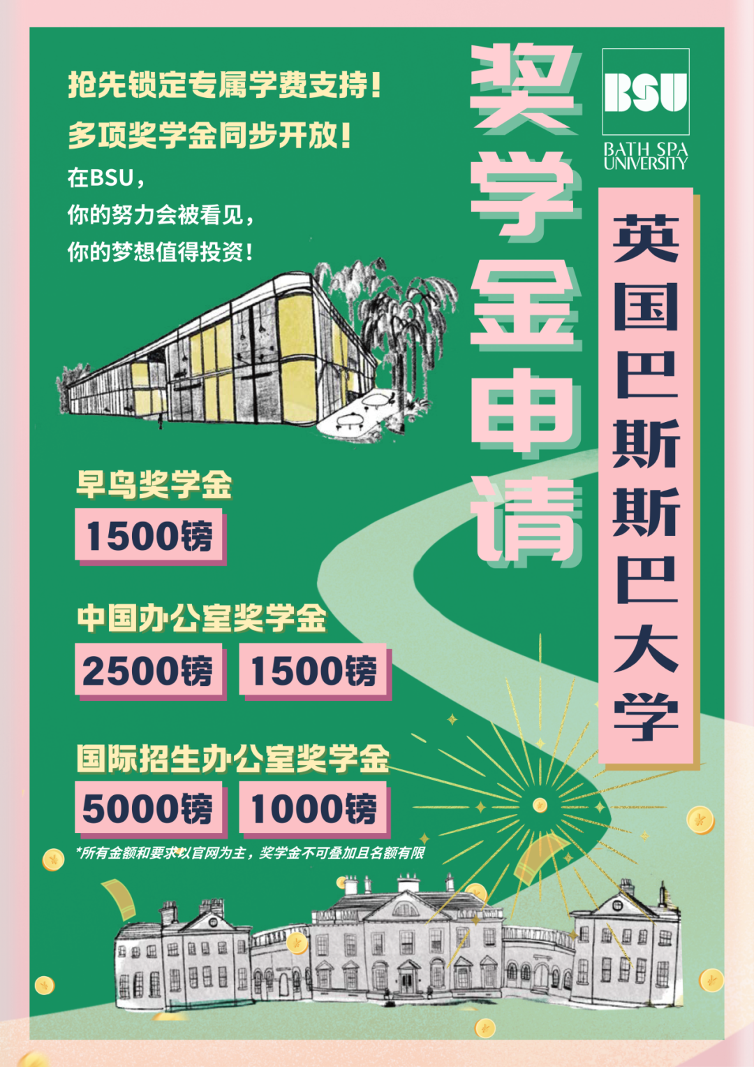最后冲刺!锁定限量早鸟奖,先到先得!立减£1500时间不等人,省钱要趁早!英国巴斯斯巴大学2026年度“早鸟奖学金”进入倒计时阶段!只需完成学费押金支付,即可自动获得£1,500学费减免,先到先得!不设额外申请,不拼成绩不卷背景——唯一要求就是:行动起来!注:付款后请务必邮件发送凭证至你的招生官老师,并注明姓名+申请ID。如有疑问,也可随时联系你的申请老师!