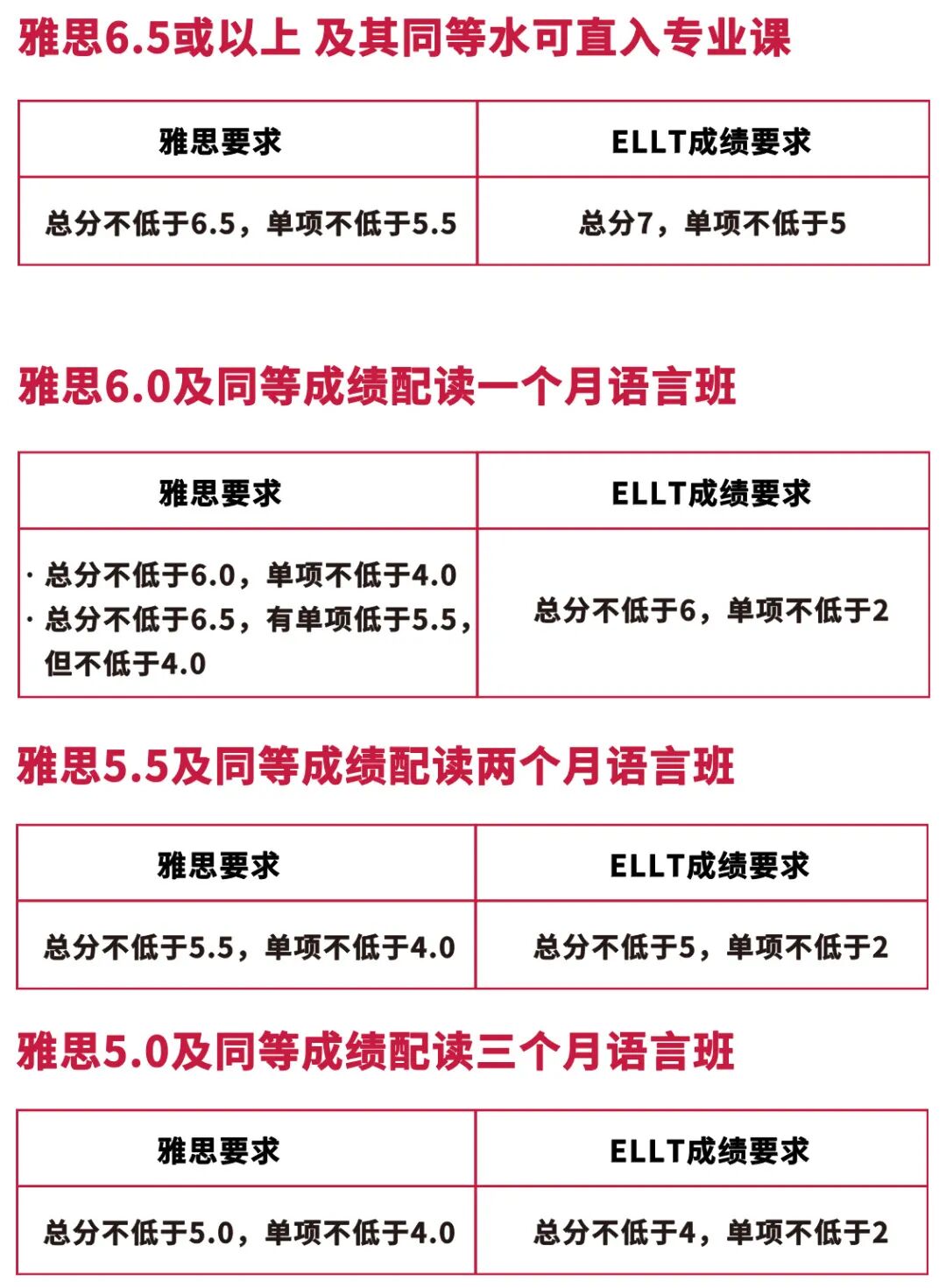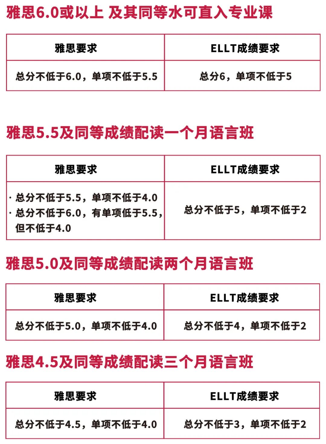 针对雅思入学要求 6.0,单项不低于 5.5 分的专业