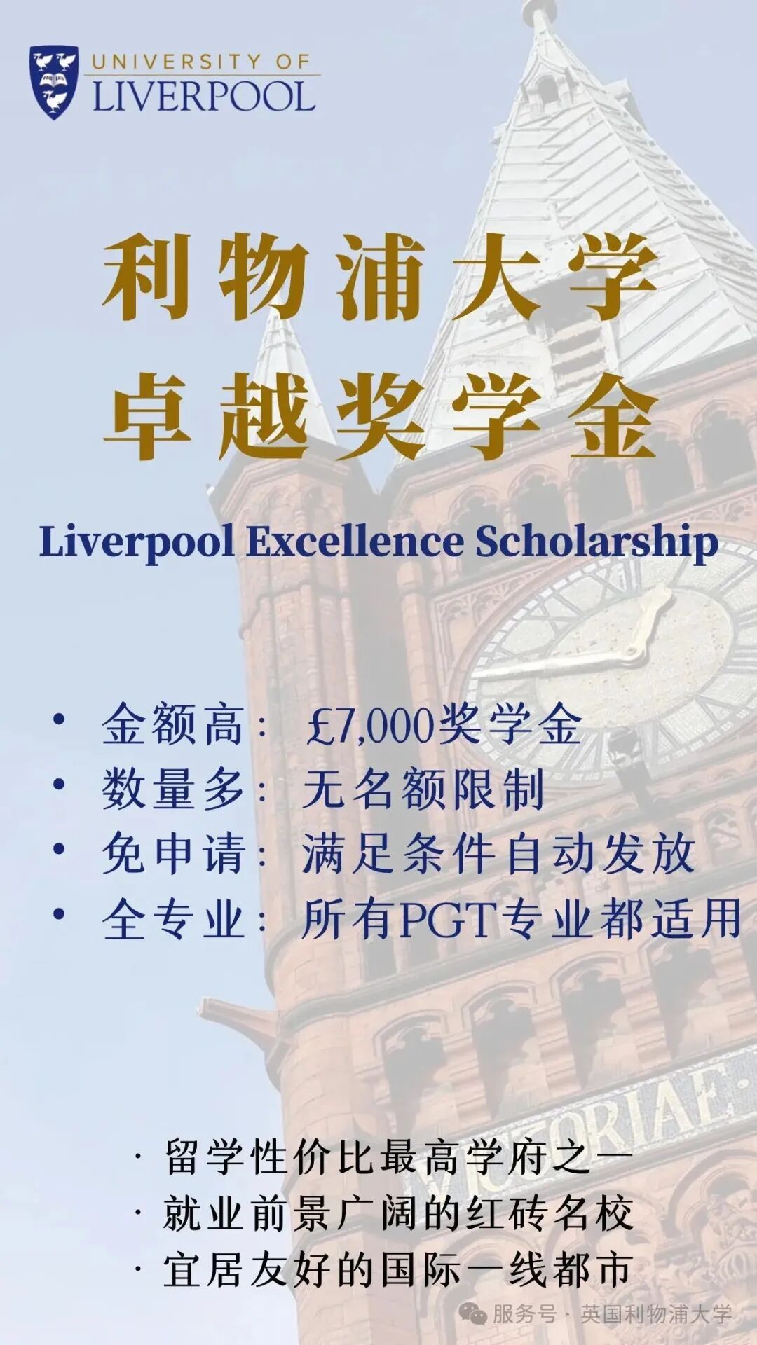 2026Fall奖学金重磅公布——高达7000英镑!利物浦大学卓越奖学金重磅升级,不设名额限制,无需额外申请——这一次,我们为卓越喝彩!
