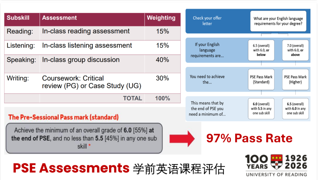 这一语言过渡政策仅适用于完成PSE后继续升读雷丁大学学位课程的学生;如果仅参加PSE课程而不继续就读雷丁大学的本科、硕士或博士项目,则不适用该政策。