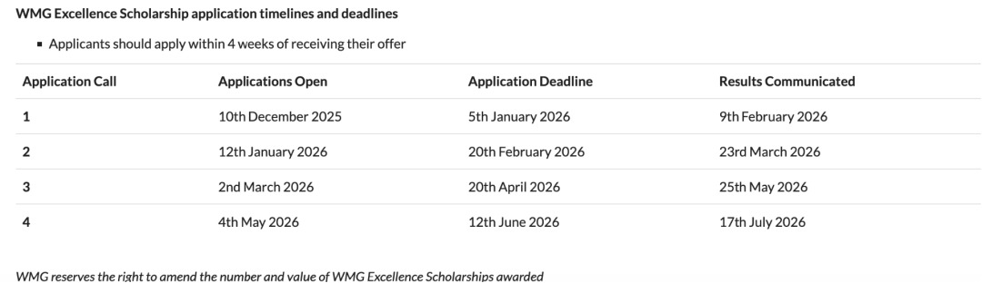 WMG学院奖学金