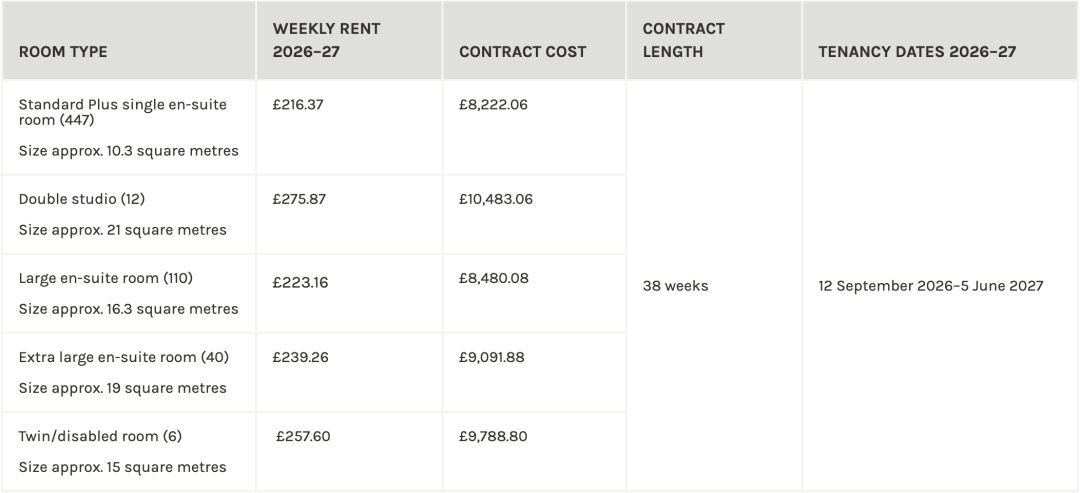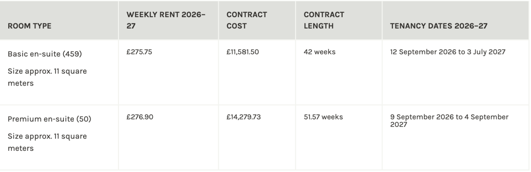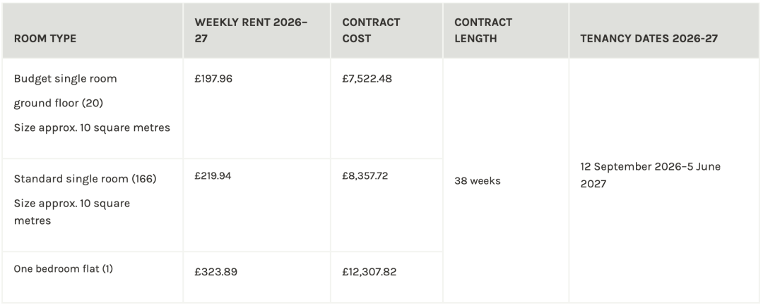 2026-27学年的宿舍申请于英国时间2026年4月15日星期三中午12点开始。