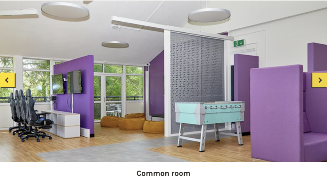 North Lodge 学生公寓所有房间均配备私人淋浴间、学习桌和充足的储物空间。学生们共用厨房和休息区域,公寓内设有室外庭院、配备电视和沙发的学生休息室,以及提供免费使用的台球桌。周边设施完善,包括医疗中心、多家商店、健身房和众多绿地,为学生提供丰富的户外活动选择。